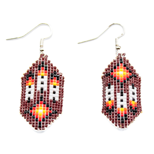 Beaded - Brown Beaded Feather Earrings on Leather