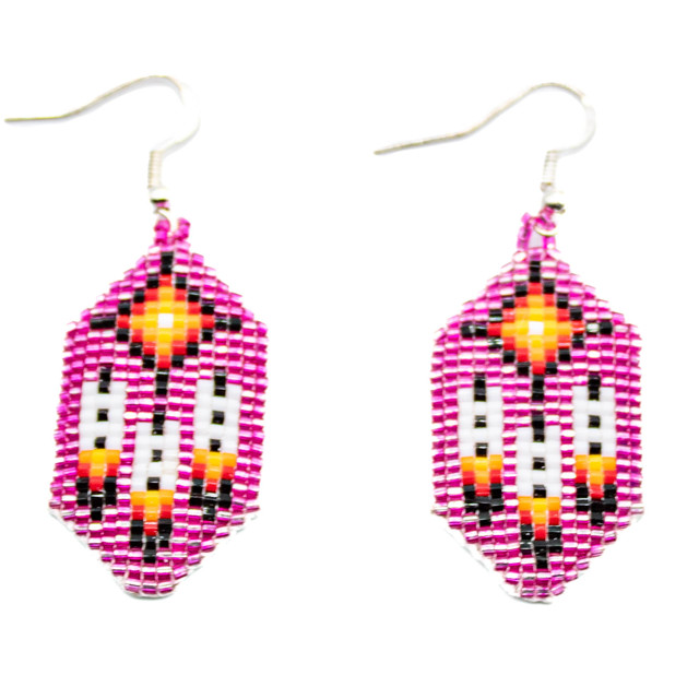 Beaded - Pink Beaded Feather Earrings on Leather