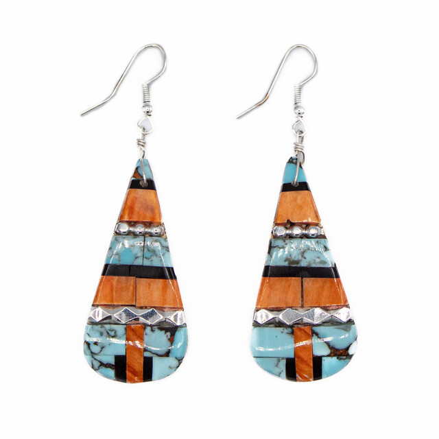 Turquoise & Silver - Turquoise Spiny Oyster & Onyx Earrings