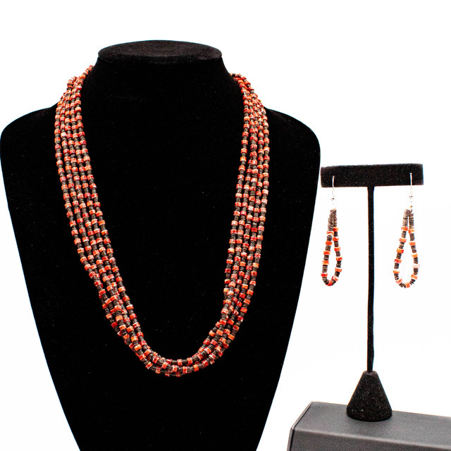 Spiny Oyster & Heishi 5 Strand Necklace Set
