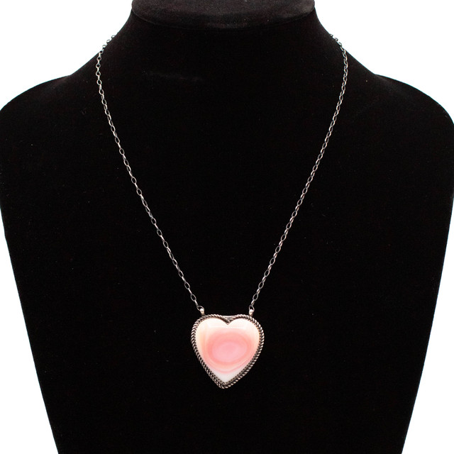 Semi-Precious Stone - Pink Conch Heart Necklace