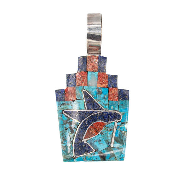 Semi-Precious Stone - Lapis, Spiny Oyster Hummingbird Inlay Pendant