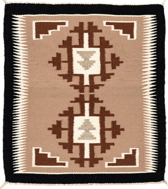 Yá’át’ééh! My name is Delorcita Francis. I learned to weave from my mother when I was eight or nine years old. Often times, my mother would ask me to finish her rugs for her. Then one day, she made a loom for me to make my own rugs. I don’t remember the first rug I wove, though.