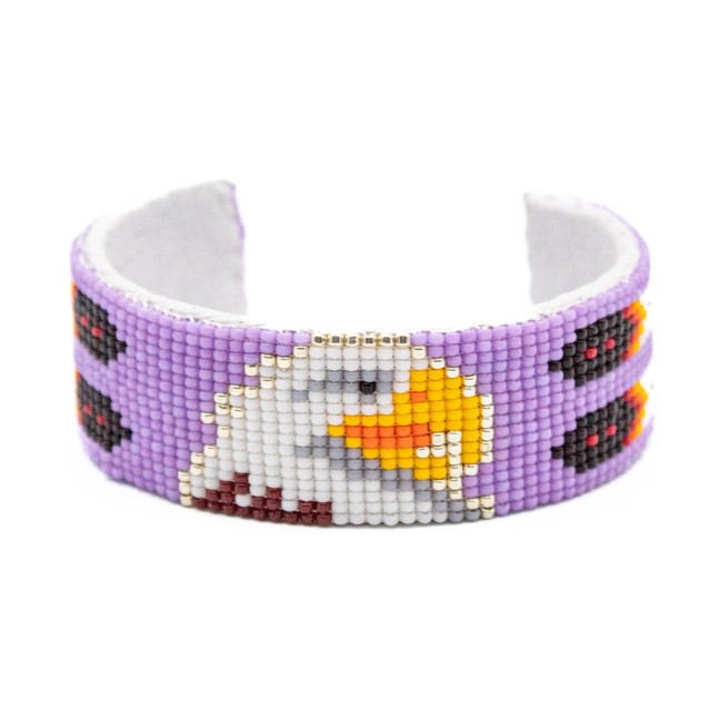 Beaded - Purple Beaded Bracelet with Eagle Head and Feathers