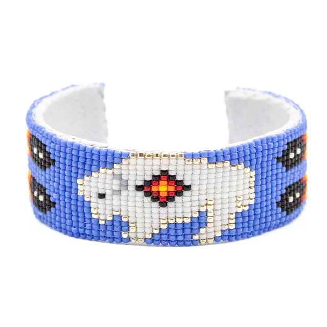 Beaded - Periwinkle Beaded Bracelet with Buffalo and Feathers