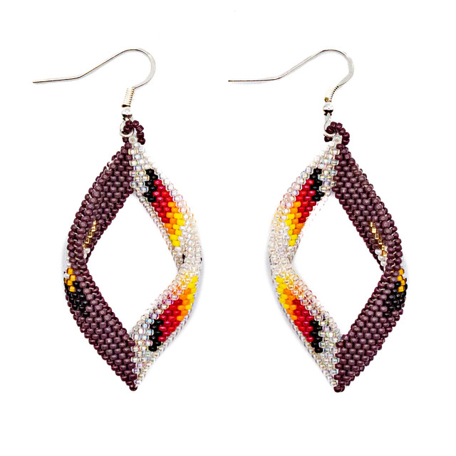Folded Peyote Leaf Beaded Earrings in Plum