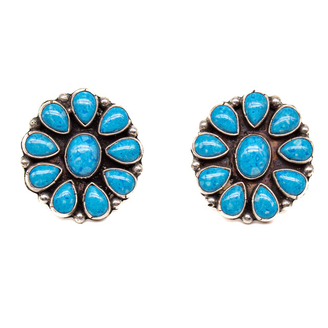 Semi-Precious Stone - Denim Lapis Cluster Stud Earrings