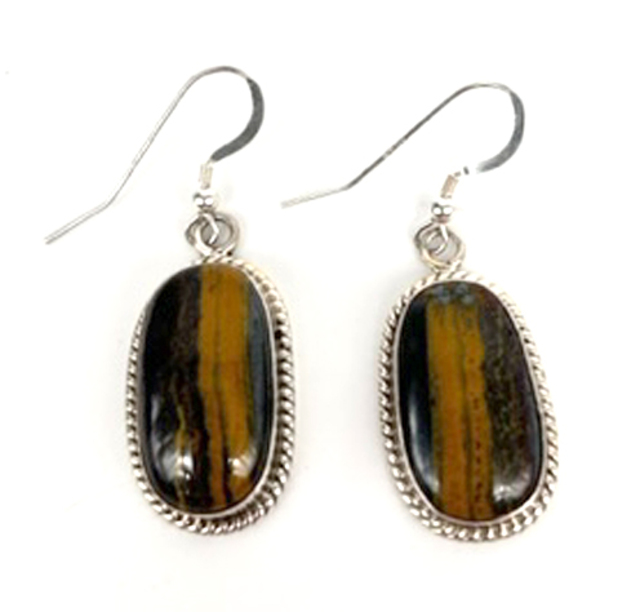 Semi-Precious Stone - Bumble Bee Jasper Stone, Silver Earrings