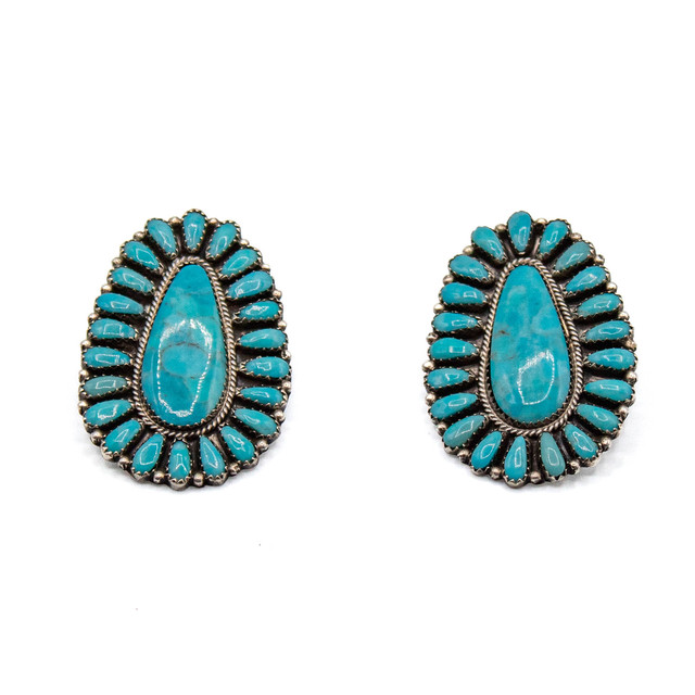 Turquoise & Silver - Blue Gem Turquoise Cluster Earrings