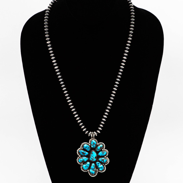 Turquoise & Silver - Sleeping Beauty Turquoise Cluster Necklace with Navajo Pearls