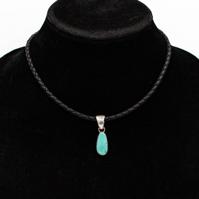 Turquoise & Silver - Turquoise Pendant On Leather