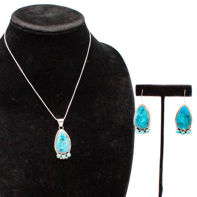 Turquoise & Silver - Turquoise And Silver Necklace With Earrings